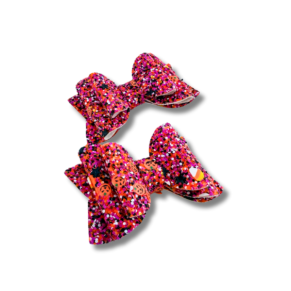 Pumpkin, Candy Corn, and Stars Pink Chunky Glitter - Micro piggtails - Halloween