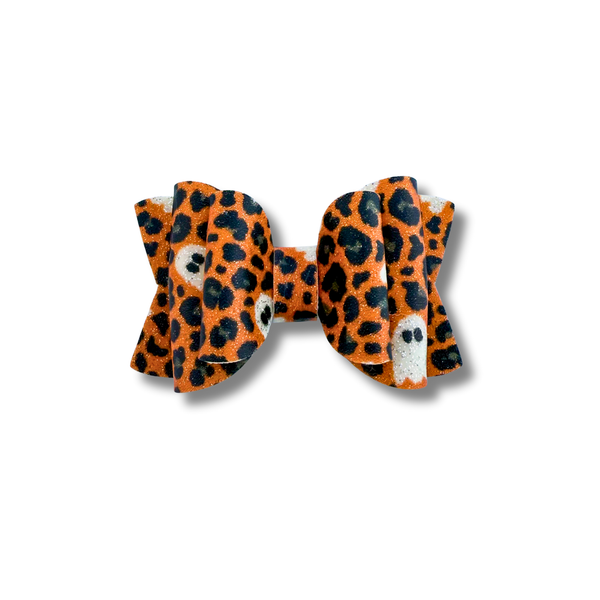 Ghosts on Orange Cheetah Print - Micro Bow - Halloween